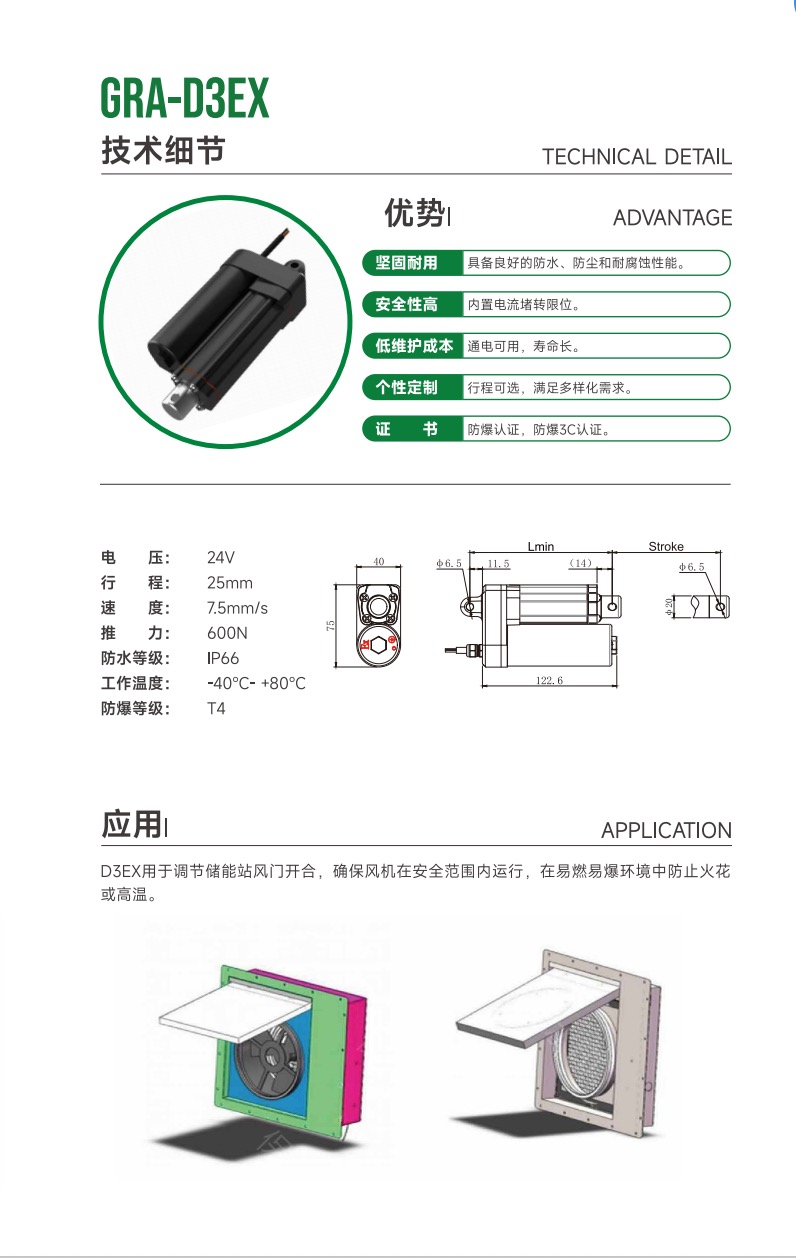D3Ex用于调节储能站风门开合,确保风机在安全范围内运行,在易燃易爆环境中防止火花或高温。